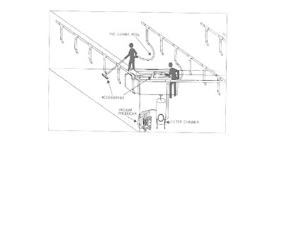 A centralized vacuum cleaning system uses air as a medium and through a network of pipes removes dust/powder from different locations across a specific area, without the intrusion of various cleaning machines. One machine is located outside the plant with a network of pipeline having openings at strategic locations to facilitate cleaning inside the Plant.